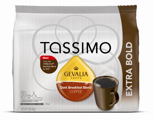 | 4 of 4 people found the following review helpful By Wolfsatz Domain "Wolfdorf" (Washington, D.C.) - See all my reviews This review is from: Gevalia Dark Breakfast Blend, 12-Count T-Discs for Tassimo Coffeemakers(Pack of 2) (Grocery) Gevalia's attempt to capture Sbux Breakfast Blend is a lot closer to the real thing than they did with the 'Dark Italian / Verona'.I am enjoying my second cup this morning very much; it is flavorful and smooth but definitely not strong. It doesn't have the awful metallic aftertaste that some other Gevalia blends have. I would situate this blend as a medium roast, much contrary to their packaging and marketing of 'extra bold' which is far from it. This coffee will make it to my must have inventory. 3 of 4 people found the following review helpful By Amazon Verified Purchase This review is from: Gevalia Dark Breakfast Blend, 12-Count T-Discs for Tassimo Coffeemakers(Pack of 2) (Grocery) More evidence Kraft is making a last ditch effort to establish their (superior) Tassimo as an alternative to Keurig. These new dark/bold flavors replace Starbucks in the line up, and to my palate are even better. Deep, developing flavors and tones to the brew that make me leave my French Press on the shelf a couple times a week now. Highly recommended. By This review is from: Gevalia Dark Breakfast Blend, 12-Count T-Discs for Tassimo Coffeemakers(Pack of 2) (Grocery) When I see coffee labeled has having "extra bold" flavor I expect just that - a very powerful flavor of coffee. That is not what you get with this. The Dark Breakfast Blend is medium, and it does not really taste good unless you add cream to it. It's not that the coffee is bitter or strong if you were to drink it black, it just tastes like something is missing if it's not sweetened and creamed. I will say that this coffee tastes better with a wider variety of flavored creamers than the other "extra bold" tassimo coffees do but not enough to make me want to buy more. |