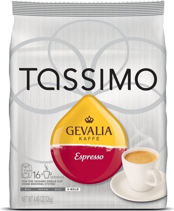 The Gevalia Espresso T- Discs provide an excellent Espresso coffee which is equal to or better than at Starbucks! By experimenting with various combinations I found for those who like the Espresso with milk, use about an ounce and a half of REGULAR milk add the desired amount of either sugar or brown sugar or molasses or Hershey's syrup, in a twelve ounce cup, heat that in microwave for 22 seconds, then use the milk frother(you can get one at Ikea for 99 cents) for a few seconds to get a light froth- do not over froth - then use that container in the Tassimo coffee machine with the Gevalia Espresso T-Disc, after brewing is complete, hold the brew button for 12 seconds more for additional coffee, after completion stir lighly and drink. I have found that you get almost similar but slightly less satisfaction with "King of Joe" Espesso T-Disc also. Would like to know other user's experience with this type of brewing.