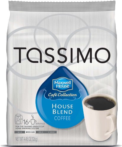 Maxwell House Café Collection House Blend Coffee, T-Discs for Tassimo Coffeemakers. A rich, balanced and flavorful coffee. Whatever your pleasure, the Tassimo Single Cup Home Brewing System serves it fast, steaming hot and perfectly brewed every time. With 8 varieties of your favorite rich, smooth Maxwell House blends available at the touch of a button, Tassimo T Discs make every day more flavorful.